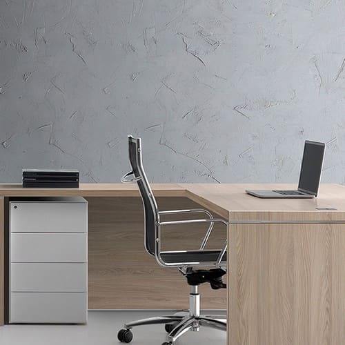 Il sistema Teseo delinea un nuovo modo di interpretare e arredare l'ambiente direzionale ispirato a funzionalità, essenzialità e concretezza. Linee semplici e rigo-rose, volumi e dimensioni importanti, finiture capaci di disegnare proposte di arredo personalizzate. La versatilità del sistema consente di realizzare attraverso l'utilizzo di pochi elementi strutturali scrivanie singole di tipo tradizionale o grazie ad appendici e tavoli di servizio nuove soluzioni dalla struttura asimettrica. La possibilità di abbinare le differenti finiture con elementi strutturali bianchi per creare innovative proposte di arredo bicolor, rende le soluzioni Teseo capaci di soddisfare in pieno le richieste di spazi direzionale di ogni genere. Accessori, librerie, cassettiere e contenitori anch'essi concepiti all'insegna della massima sem-plicità costruttiva ed estetica, rendono agevole e completo l'inserimento in ogni contesto con interessanti risultati estetici e funzionali. Teseo valorizza l'ambiente e la personalità di chi ricerca uno stile concreto e funzionale.